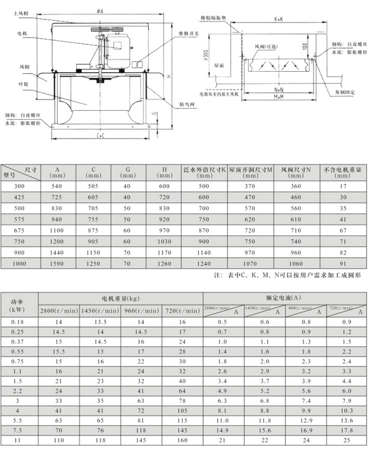 ??2、风机配套电机:用防护等级IP54、绝缘等级F级电机,如配绝缘等级为H级,产品可在300℃/45min高温环境下连续运行;另也可配防爆电机、双速电机和变频电机。