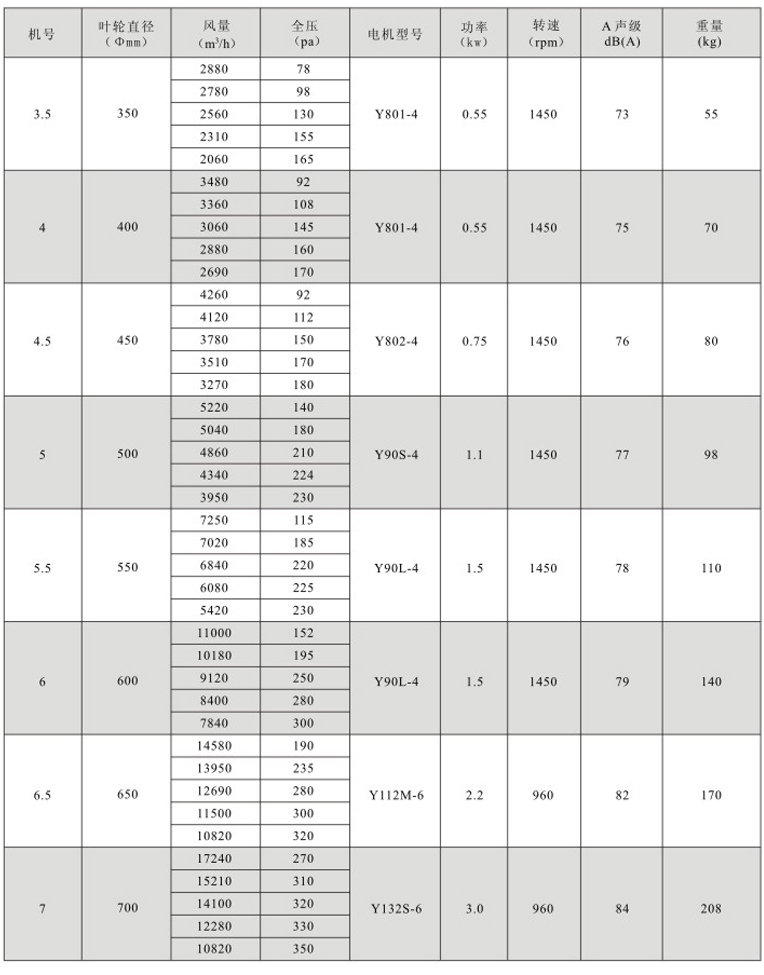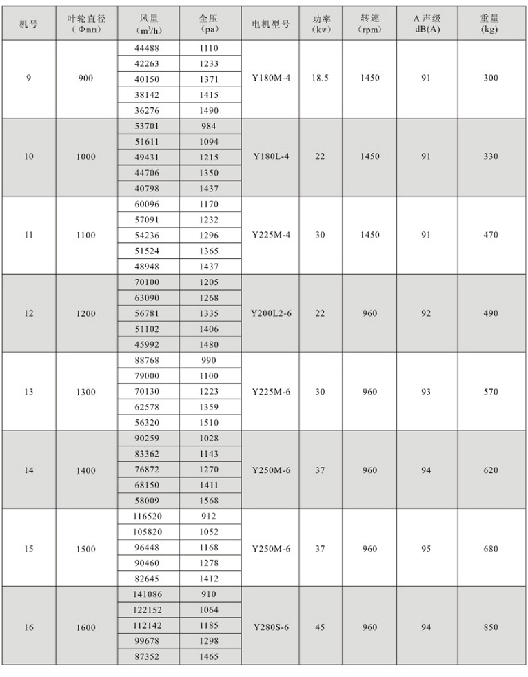 ??5、效率高:本系列风机采用先进的CAD软件经多目标优化设计研制开发的新产品,经实测表明风机效率大于80%,部分大机号大于85%,并具有效率曲线平坦的特点,有利于节能。