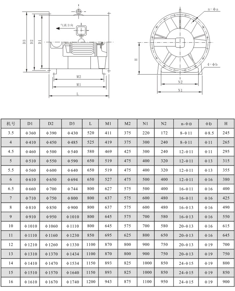 ??6、安装方便,占地较离心风机少:该风机基本形式为轴流式风机或混流式风机,可直接与风管连接或壁式安装,安装形式可采用垂直式或水平式,很大程度上节省了占地面积。