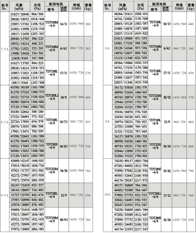 PYHL-14A系列双速混流排烟风机性能参数表(2)