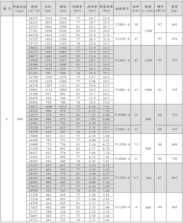 HTFC-V型柜式离心风机箱性能参数表(8)