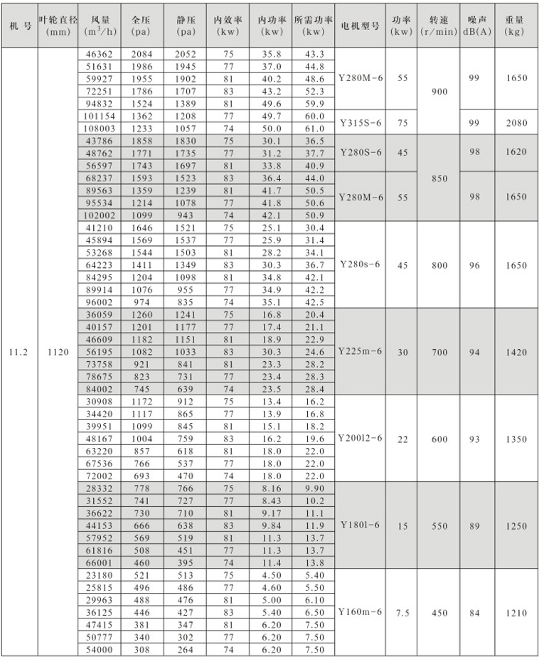 风量:1080~68333 m?/h,