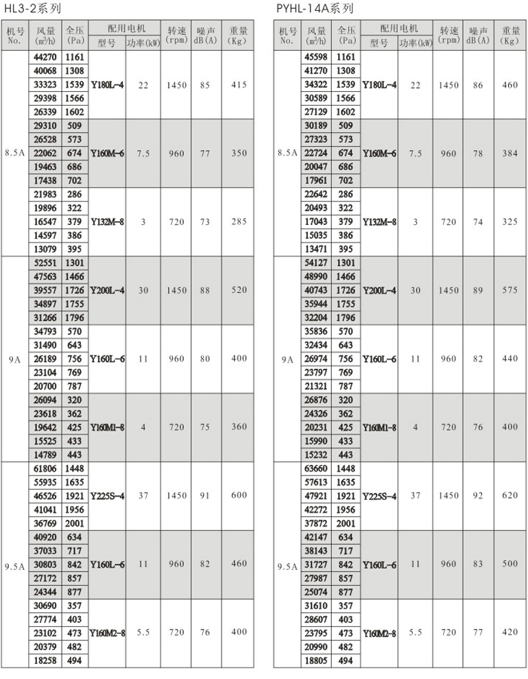 HL3-2A系列混流风机,PYHL-14A系列混流排烟风机性能参数表(8)