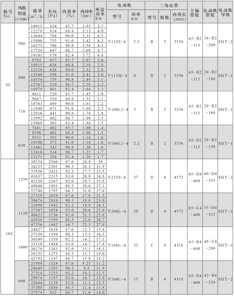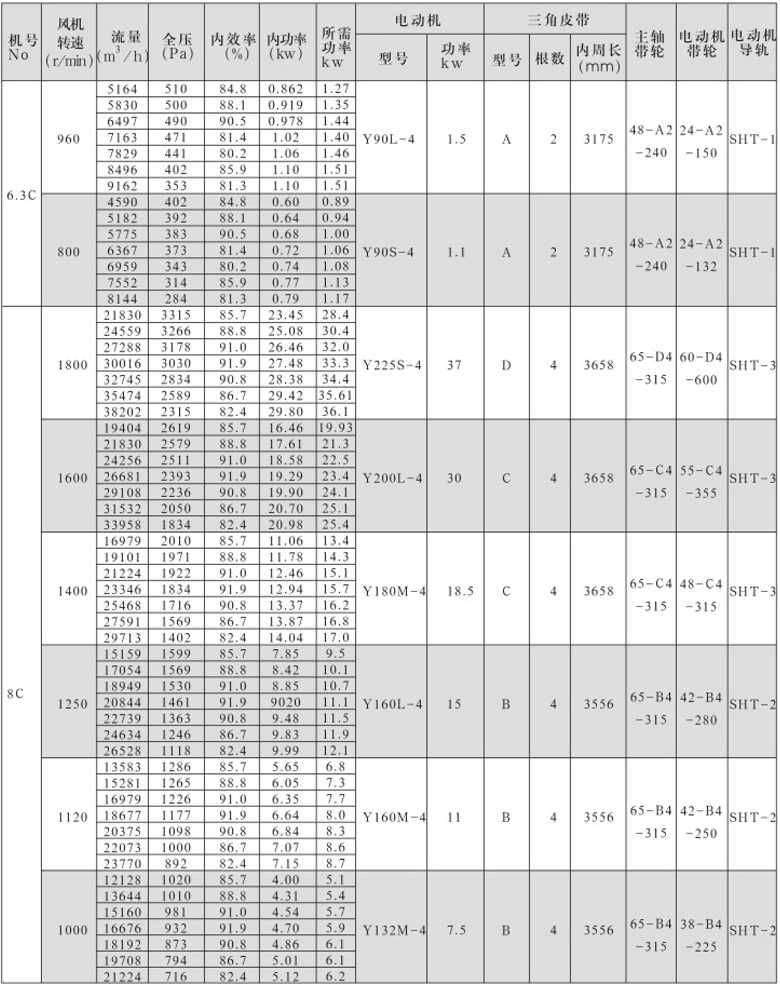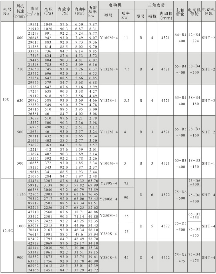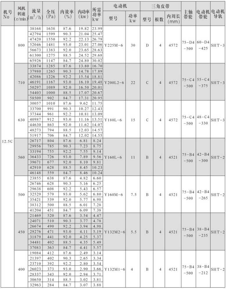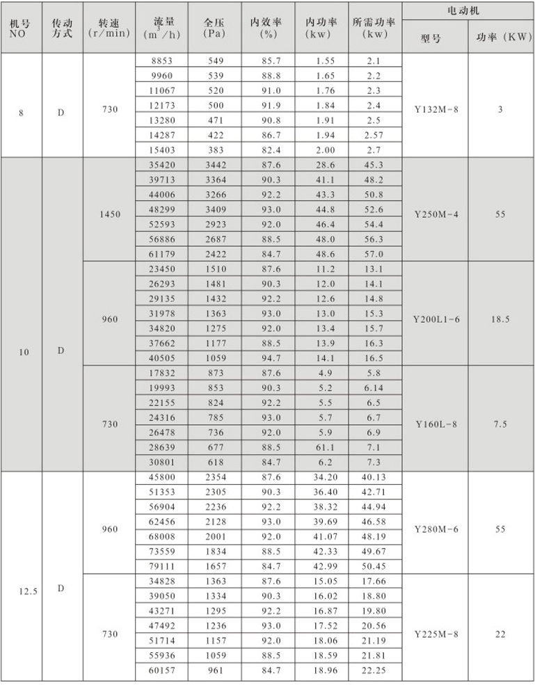 1)叶轮由12个后倾翼型叶片、曲线型前盘和平板后盘组成。均用钢板制造,并经动、静平衡校正,空气性能良好,效率高、运行平稳。