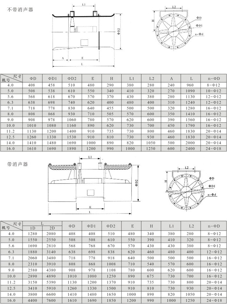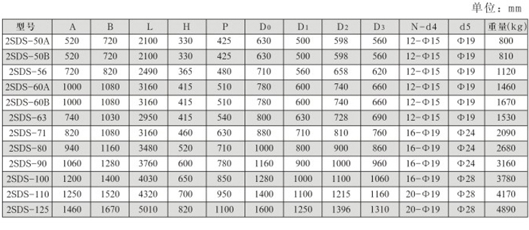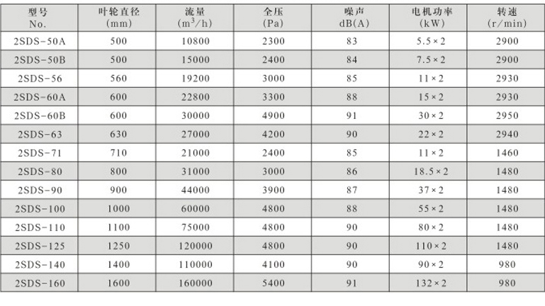 2SDS-50A~125隧道对旋轴流通风机外形尺寸表
