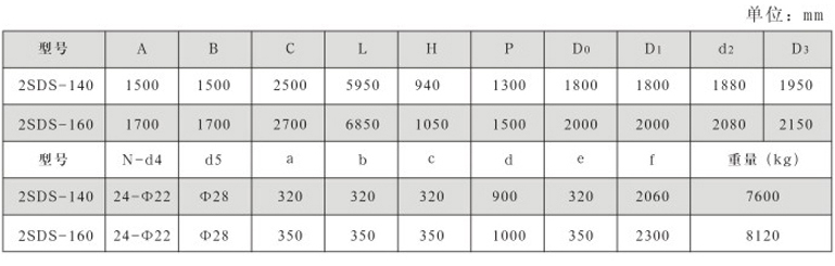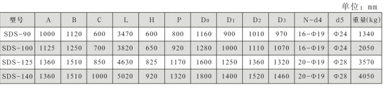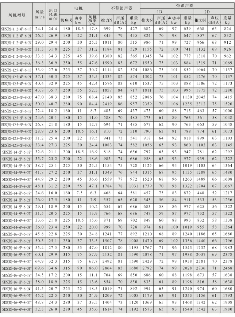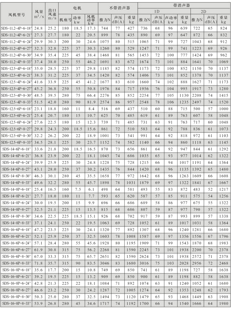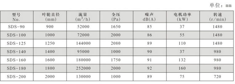 SDS-90~140型动叶可调隧道单级轴流通风机外形尺寸表