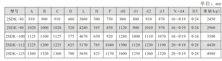 2SKL-80~125型动叶可调隧道对旋轴流通风机外形尺寸表