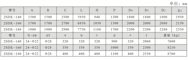 2SKL-140~180型动叶可调隧道对旋轴流通风机外形尺寸表