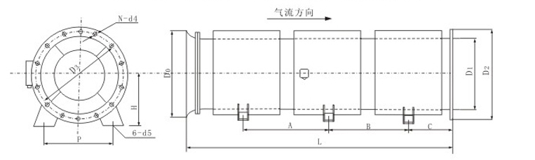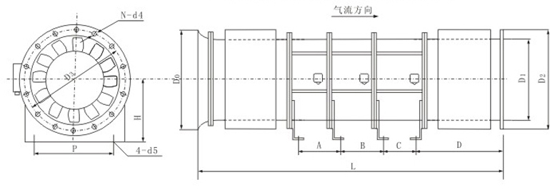 B2SDS-60~110型防爆隧道对旋轴流通风机外形图