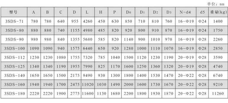 3SDS-71~180型隧道三级串联轴流通风机外形尺寸表
