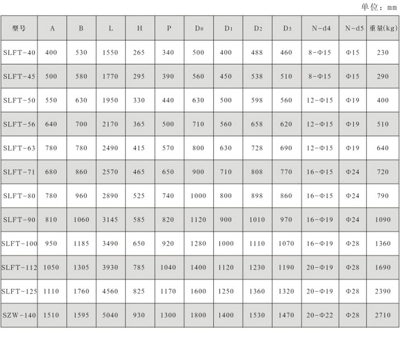 SLFT-40~140隧道子午加速轴流通风机外形尺寸表