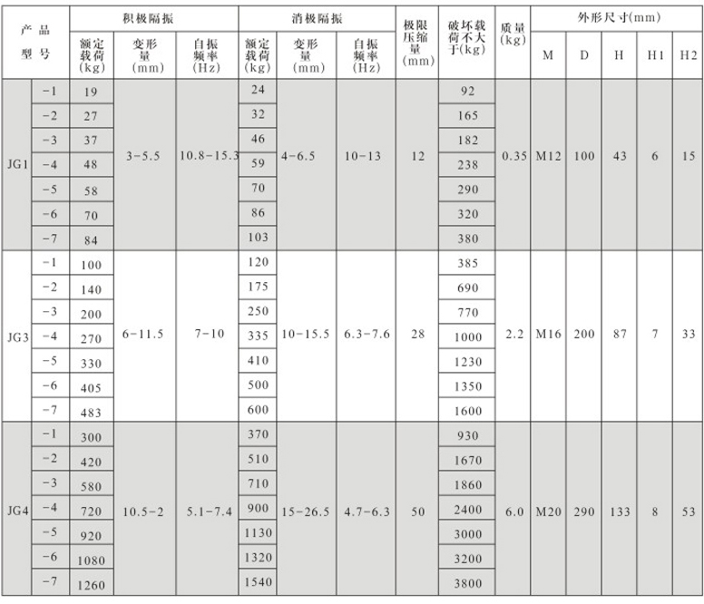 JG型橡胶剪切减振器用特种阻力弹簧和特种减振橡胶,金属橡胶骨架和钢板外壳复合而成(外壳由钢板经模具冲压,压制成形),具有双效减振能力,减振幅度大、减振力矩大,并具有防滑、防腐防火等特点。